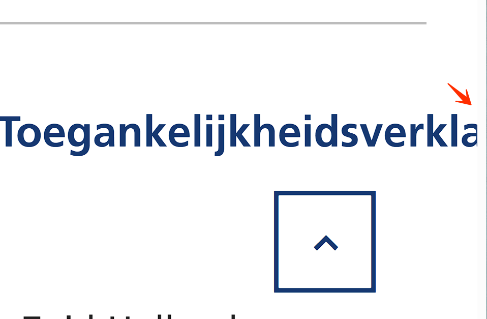 Op een klein scherm verschijnt de knop “Inhoudsopgave”, waarmee extra inhoud kan worden geopend en gesloten. Deze knop heeft geen juiste toegankelijke rol en geen juiste toestand (open/gesloten).