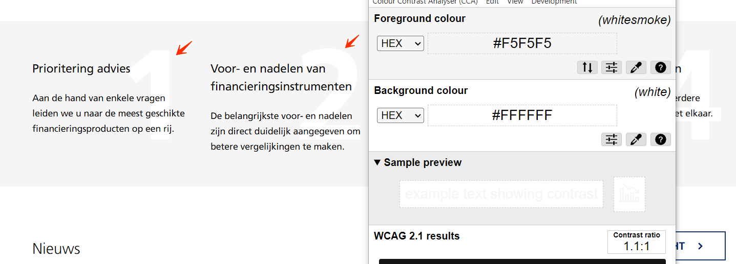 Issue nr. 54 - Kleurcontrast bij tekst kleiner dan 24px en niet vetgedrukt is onvoldoende