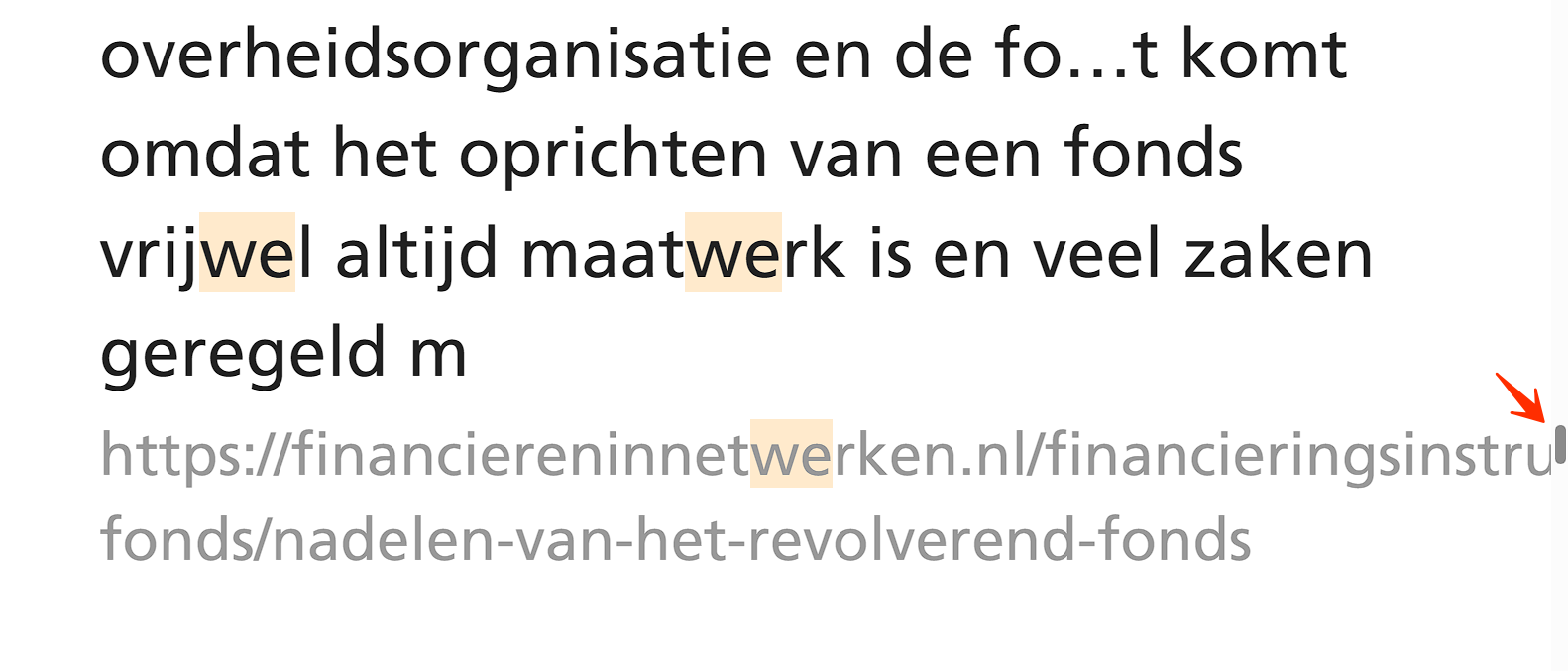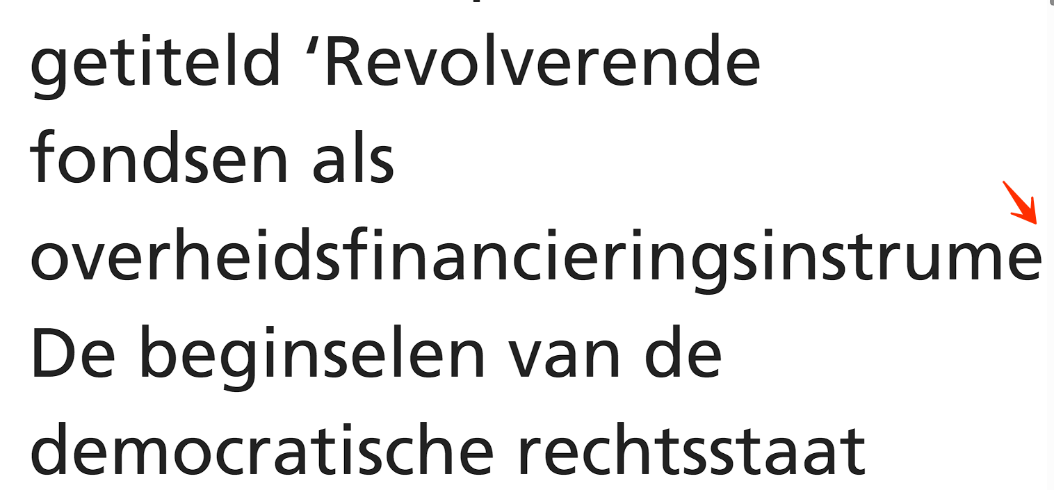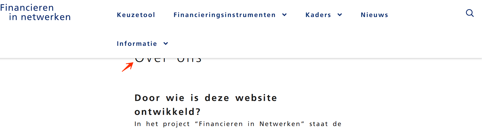 Wanneer deze pagina wordt bekeken met een schermresolutie van 1280 bij 1024 pixels en ingezoomd tot 400%, is sommige tekst gedeeltelijk niet zichtbaar, bijvoorbeeld “overheidsfinancieringsinstrument”.