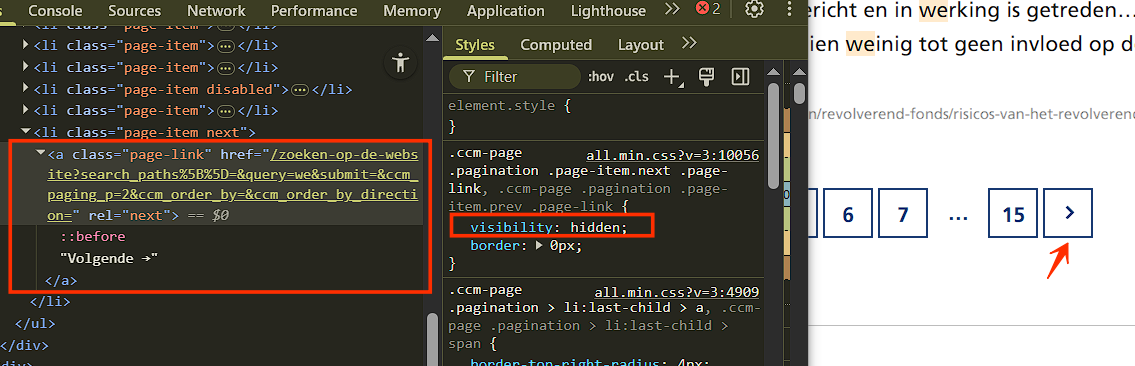 Interactieve elementen zijn verborgen voor hulpsoftware of krijgen focus terwijl ze niet zichtbaar zijn — Checkboxes zijn verborgen met display: none, pagineringslinks met visibility: hidden, en elementen in gesloten menu's/panelen krijgen nog steeds toetsenbordfocus. Dit patroon komt terug op meerdere pagina's en maakt delen van de website onbereikbaar of verwarrend voor gebruikers van schermlezers en toetsenbordgebruikers.