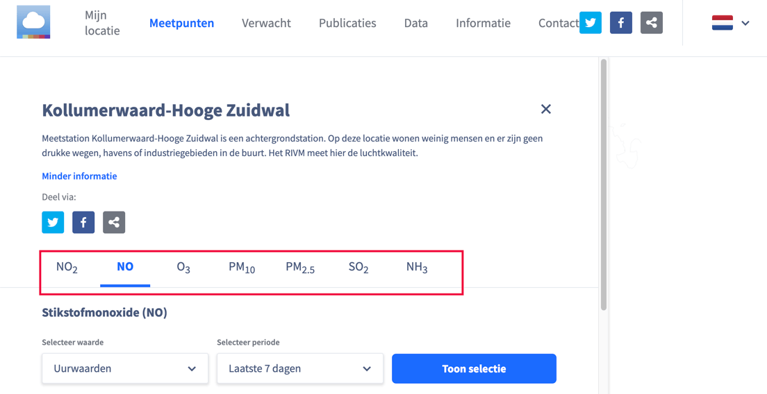 Dit probleem komt ook voor op de pagina: https://www.luchtmeetnet.nl/contact - bij de knop die in eerste instantie is gelabeld als “Algemeen Luchtmeetnet”).